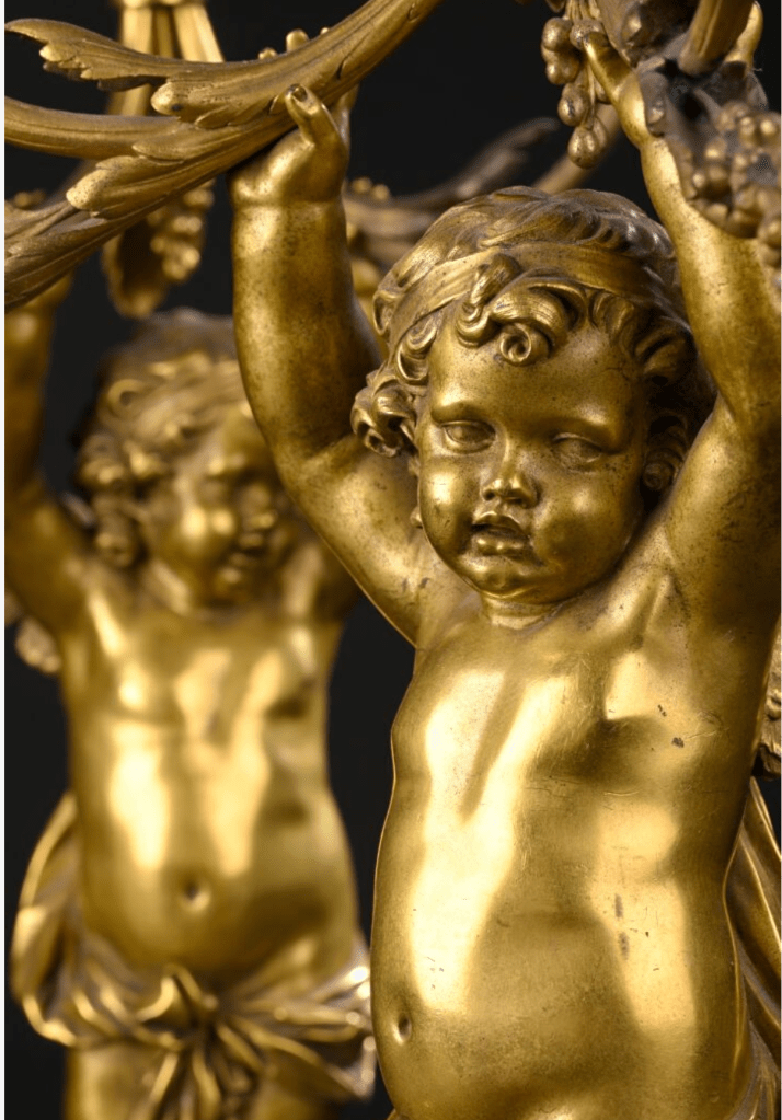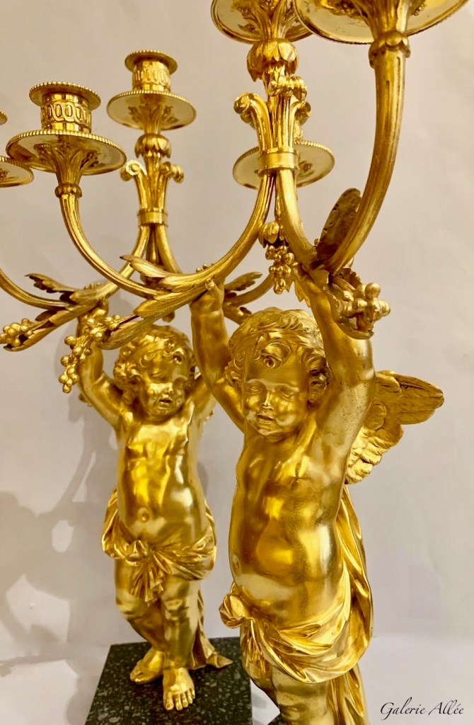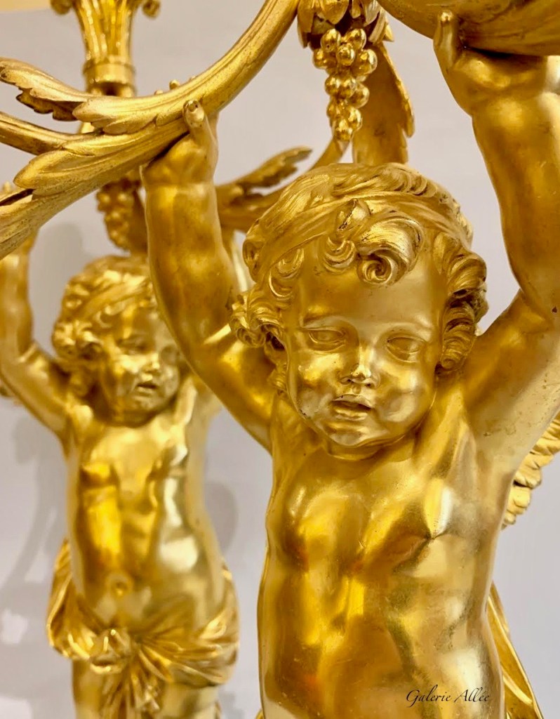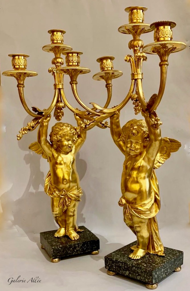 PAIRE DE CANDÉLABRES AU PUTTO EN BRONZE DORÉ D’ÉPOQUE LOUIS XVI,