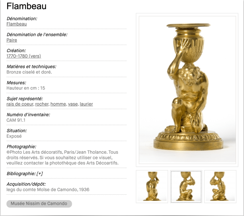 La conception d’ensemble doit beaucoup au travail des bronziers parisiens de la seconde moitié du XVIIIe siècle, à comparer notamment avec la paire du musée Camondo. Les bronziers parisiens étaient très admirés en Russie et inspiraient leurs bronziers à produire des pièces similaires.