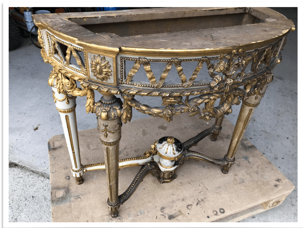 Deuxièmement par la coloration en dorure et laque. Bonzanigo avait l’habitude de travailler avec le doreur Ponticelli et le peintre Michel Rapous.
