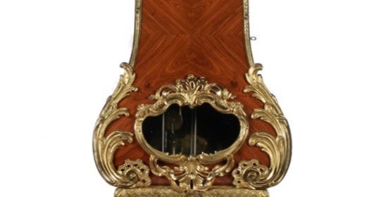 REGULATEUR DE PARQUET PARIS, EPOQUE LOUIS XV BOIS DE VIOLETTE, BRONZE CISELE, DORE ET CERTAINS AU »C »COURONNE. ESTAMPILLE B.LIEUTAUD POUR LA CAISSE – MOUVEMENT SIGNE DE