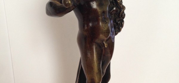 SCULPTURE REPRESENTANT CUPIDON DU GROUPE MERCURE ET CUPIDON BRONZE A PATINE BRUNE ATTRIBUE A FRANÇOIS DUQUESNOY ( 1597-1643 ) BASE CARREE EN MARBRE BRECHE VERTE