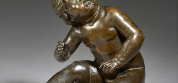 SCULPTURE REPRESENTANT UN PUTTI EN EQUILIBRE BRONZE A PATINE BRUNEATTRIBUE A FRANÇOIS DUQUESNOY ( 1597-1643 ) BASE CARREE EN PORPHYRE SUEDOIS POSTERIEURE HAUTEUR SCULPTURE: 32