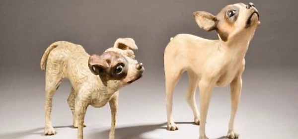 SCULPTURE Jean-François FOURTOU (Né en 1964) PAIRE DE PETITS CHIENS, 2001 METAL, FILASSE ET PAPIER Hauteur : 31 et 24 Largeur 29 et 33 : Profondeur