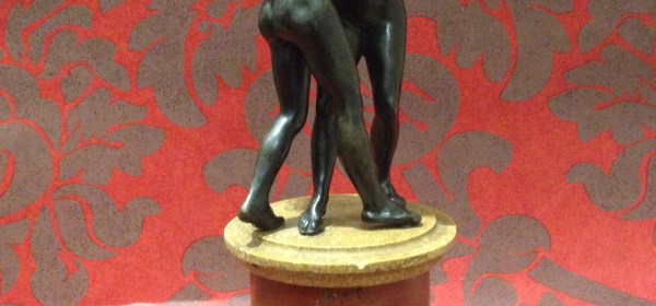 DEUX FEMMES LUTTANT D’APRES BARTHELEMY PRIEUR ( 1540-1611 ) BRONZE DEBUT 18 ème siècle BASE EN MARBRE ITALIE 19 ème siècle H: (bronze) 18 cm
